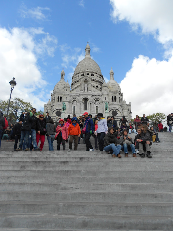 The next day, we woke up early again so that we could go see Notre Dame. When I first got to the cathedral, wasn't very impressed. It looked like many other cathedrals that I had seen, and I was expecting a lot more because it is so famous. When I went inside, however, I liked it a lot more. The stain glass windows are beautiful. I thought of the 1996 Disney movie as I walked through the church. I remember when the movie first came out. I was five years old. I never thought that I would actually get a chance to see the cathedral and walk through it. I felt very lucky to have that opportunity. We went up into the bell tower to see the view of Paris and all of the gargoyles up close. When we came down from the tower, there was a group of gypsies dancing around and holding signs. It actually felt like I was in the festival from the Disney movie. It was a really cool experience. After the cathedral, we ate crepes and then walked around the neighborhood for a little bit. It was my favorite part of Paris because of the river and all of the little market shops. We left that area a little later and headed to Montmartre. We saw another beautiful cathedral, Sacre Coeur, and sat on the steps to get another amazing view of the city. Next, we walked around a little and then went to the Moulin Rouge. I wasn't very impressed with the place. I was expecting it to be a lot like the 2001 movie, Moulin Rouge, but it didn't look at old or grand. After the Moulin Rouge, we were all very tired and decided to go back to the hostel to rest up for the last day in Paris.